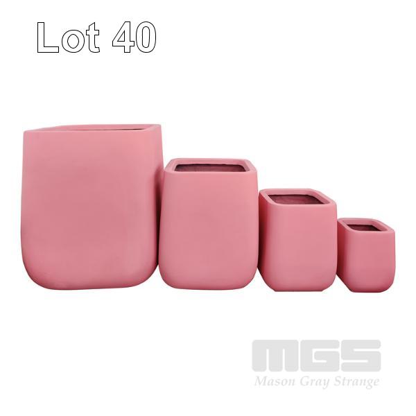 2 X SETS OF 4 CONTEMPORARY PLANTER POTS (NEW) STYLE MONARCH TALL COLOUR PINK. SIZES... 2 @ 550 X 550 X 660 MM 2 @ 420 X 420 X 500 MM 2 @ 310 X 310 X 370 MM 2 @ 210 X 210 X 260 MM RRP $349.99