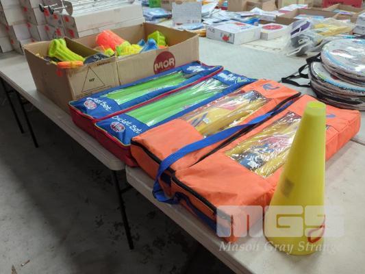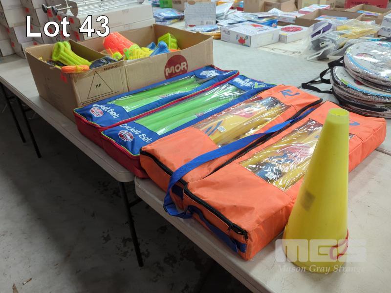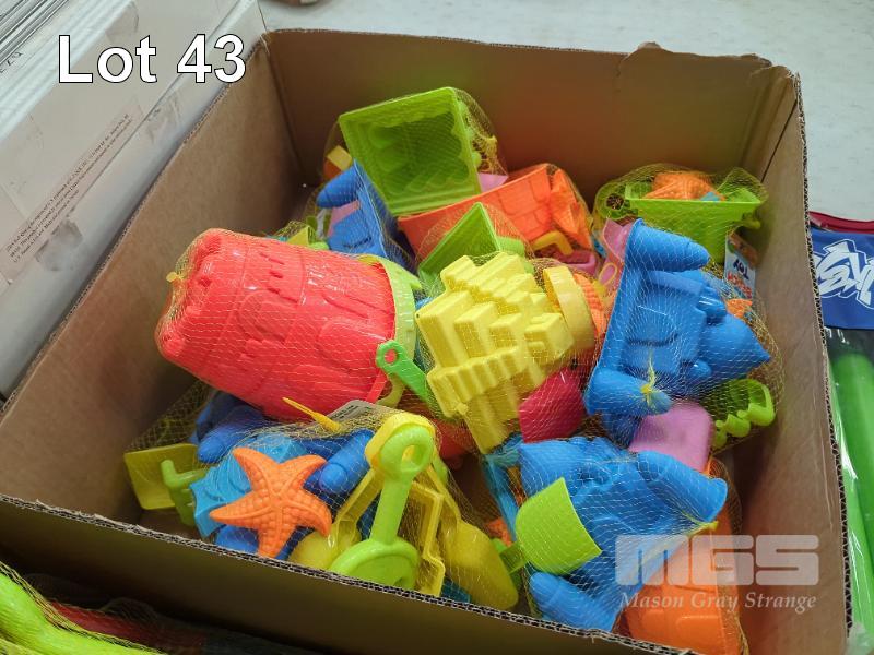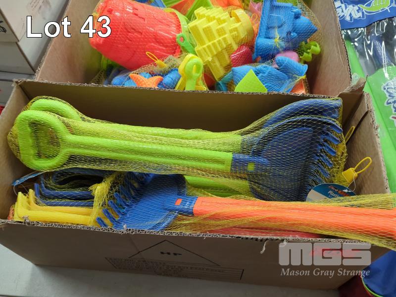 COLLECTION OF ASSORTED BEACH TOYS INCLUDING SAND CASTLE SETS, SAND RAKES & BEACH CRICKET SETS, WITCHES HATS ETC.