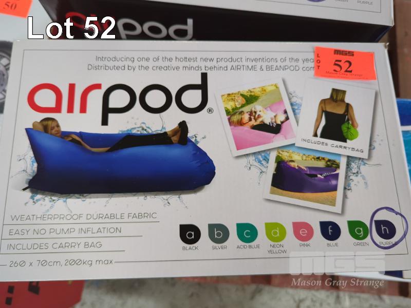 3 X AIRPOD INFLATABLE FABRIC LOUNGE SEATS IN PURPLE. 260 X 70 CM.
