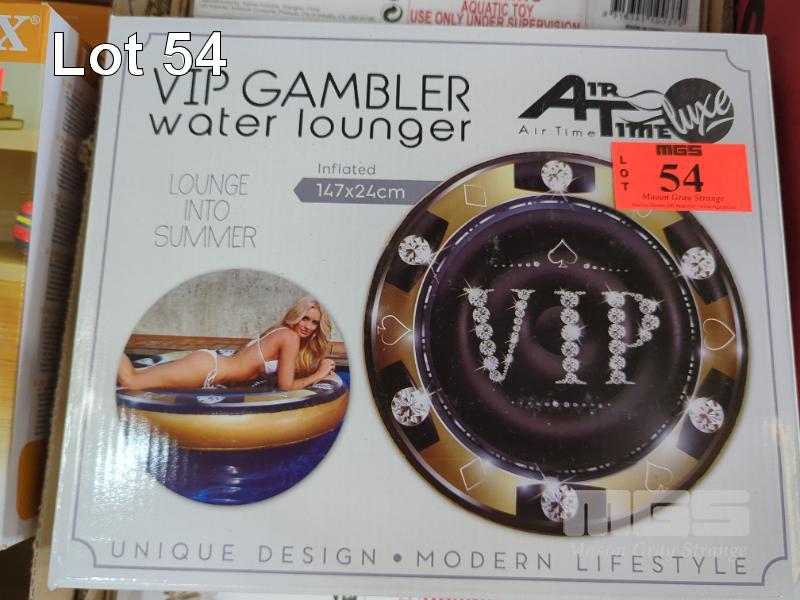 6 X "VIP GAMBLER" INFLATABLE POOL LOUNGERS, 147 CM DIAMETER. ALL NEW IN BOX.