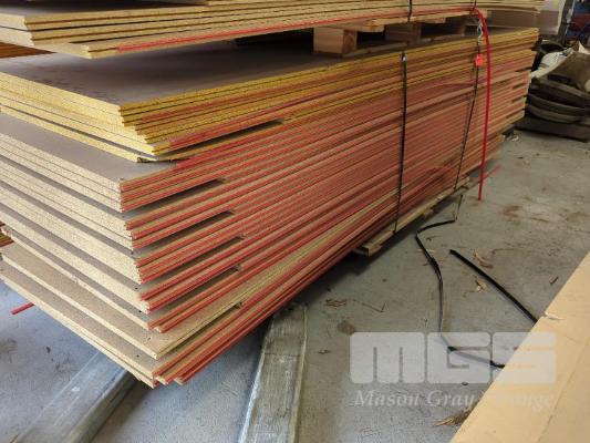 35 X TONGUE & GROOVE STRUCTUAL PARTICLE BOARD FLOORING. RED TONGUE. 27 @ 3,090 X 800 X 22 MM. 8 @ 2,400 X 800 X 22 MM (1 X PACK)