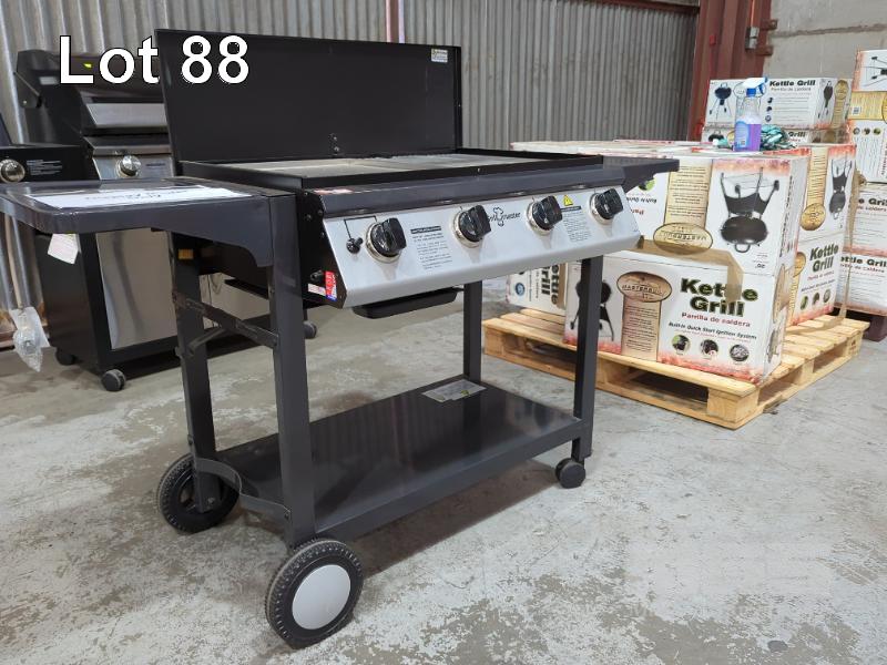 GRILLMASTER MOBILE 4-BURNER FLAT TOP GAS BBQ WITH TROLLEY MODE 1000-4B NEW IN BOX. ORP $599