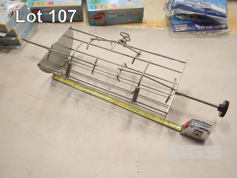 EZQ EIGHT INCH ROTISSERIE CRADLE - SMALL (17.5 INCH LONG) 17.5 X 8" STAINLESS STEEL ROTISSERIE CRADLE, HANDLE, CLAW CLAMPS & CLAWS. * E-Z QUE ROTISSERIE BASKET SYSTEM * * NO MOTOR * ORP $239.00