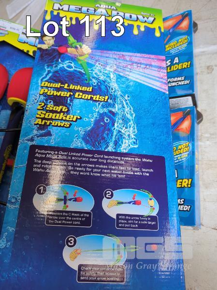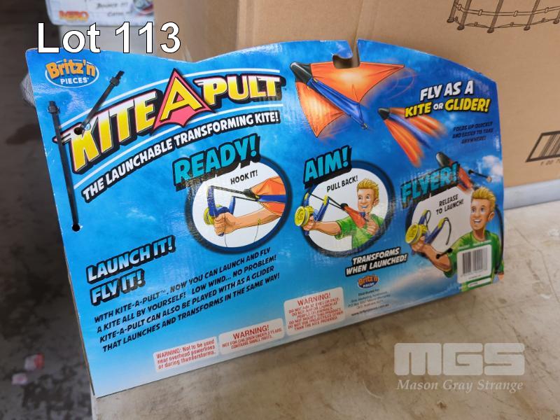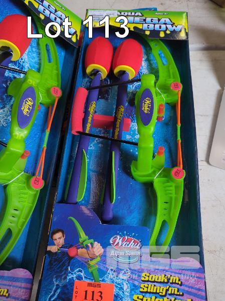 LAUCHING TOYS. 8 X AQUA MEGA BOW TOYS AND 2 X "KITE-A-PULT" TOYS