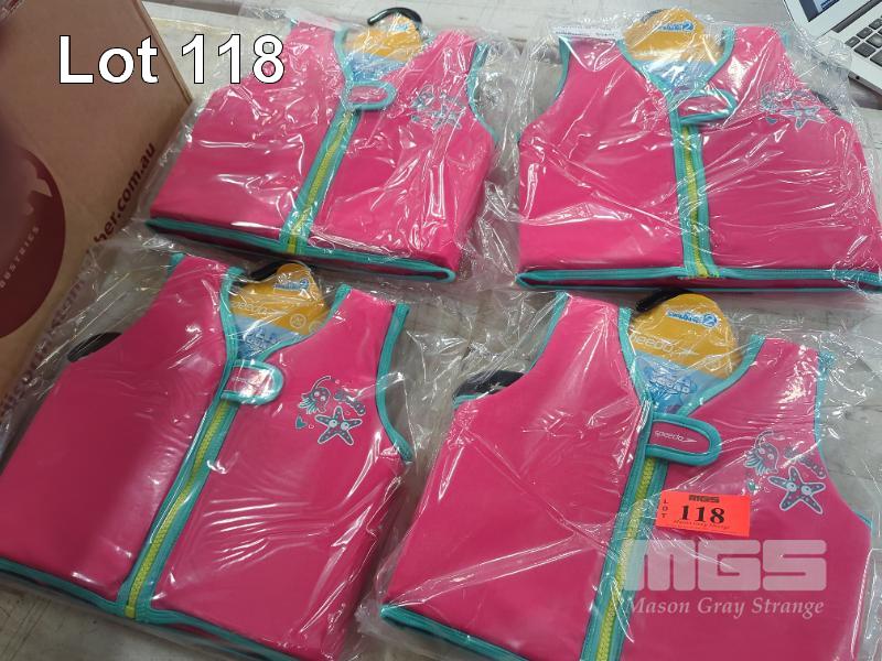 4 X SPEEDO "SEA SQUAD" CHILDREN'S FLOAT VESTS (51 CM CHEST / 1-2 YRS).