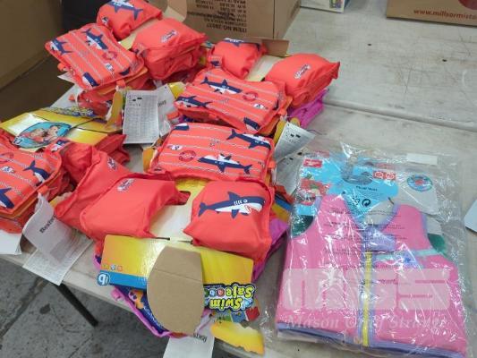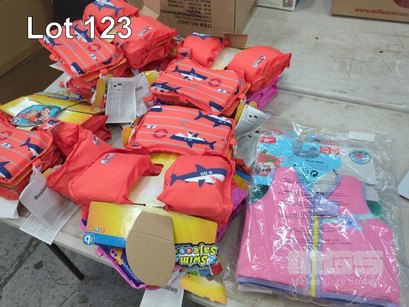 11 X ASSORTED LEARN TO SWIM FLOAT VESTS.
