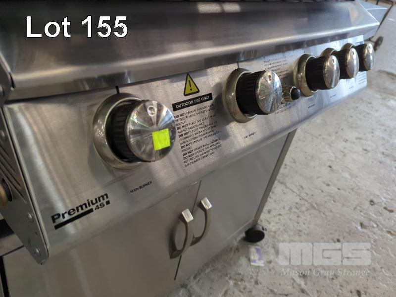 GRANDHALL PREMIUM 4S MOBILE STAINLESS STEEL COVERED GAS BBQ ON CABINET TROLLEY.