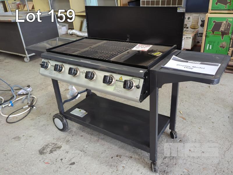 GRILLMASTER MOBILE FLAT TOP GAS BBQ 6-BURNER WITH TROLLEY. MODEL 1000-6B. NEW IN BOX. ORP $699
