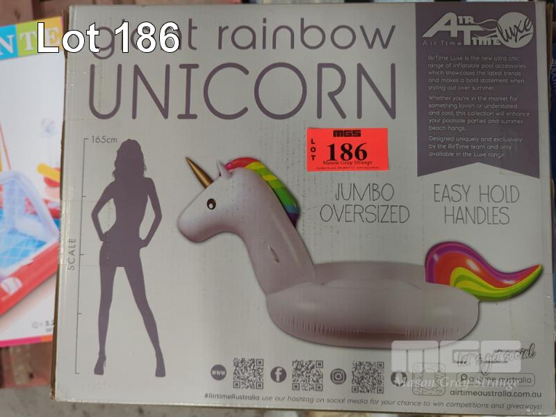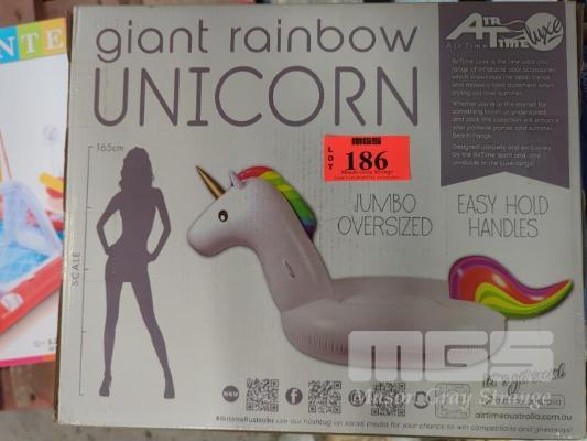 4 X JUMBO OVERSIZED "RAINBOW UNICORN" INFLATABLE POOL LOUNGERS 275 X 115 X 127 CM