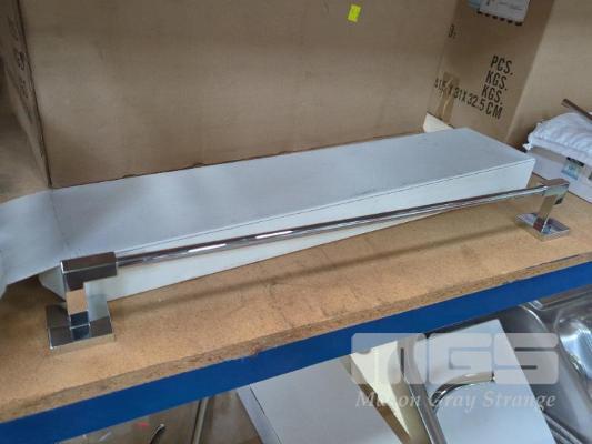 10 X WALL MOUNT SINGLE TOWEL RAILS, CHROME, WITH FITTINGS, NEW IN BOX.