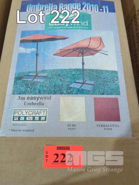 1 X 3.0 M "EASYWIND" MARKET UMBRELLA. COLOUR TERACOTTA. NEW IN BOX