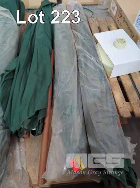 3 X 3.0 M TIMBER LOOK MARKET UMBRELLAS. COLOUR GREEN. ALL NEW