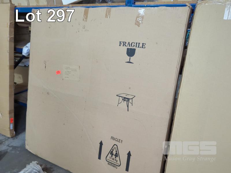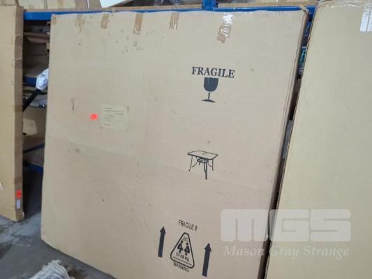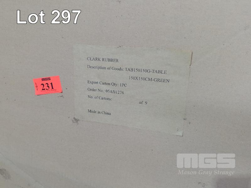 SQUARE TABLE OUTDOOR TABLE, 1.5 X 1.5 M. COLOUR GREEN WITH UMBRELLA HOLE. NEW IN BOX.