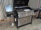GRANDHALL PREMIUM 4V MOBILE GLOSS BLACK COVERED GAS BBQ ON CABINET TROLLEY. FEATURES MATCHING HOOD & 2-DOOR MATCHING CABINET, 4-BURNERS PLUS SIDEBURNER AND ELECTRONIC IGNITION. MODEL 1001SPP NEW IN BOX (2 x BOXES). ORP $799