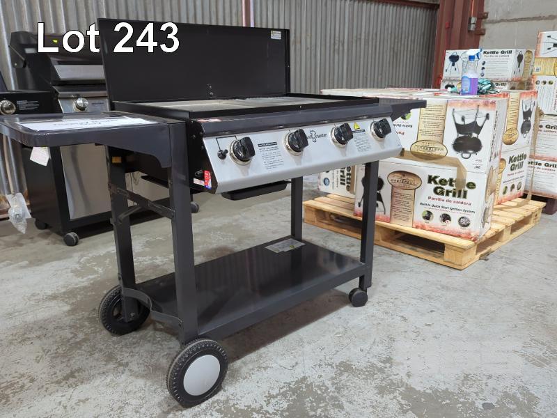 GRILLMASTER MOBILE 4-BURNER FLAT TOP GAS BBQ WITH TROLLEY MODE 1000-4B NEW IN BOX. ORP $599