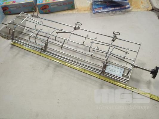 EZQ EIGHT INCH ROTISSERIE CRADLE - LARGE (28 INCH LONG) 28 X 8" STAINLESS STEEL ROTISSERIE CRADLE, HANDLE, CLAW CLAMPS & CLAWS. * E-Z QUE ROTISSERIE BASKET SYSTEM * * NO MOTOR * ORP $399.00