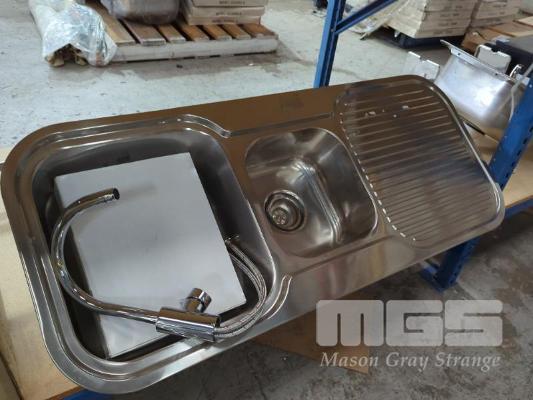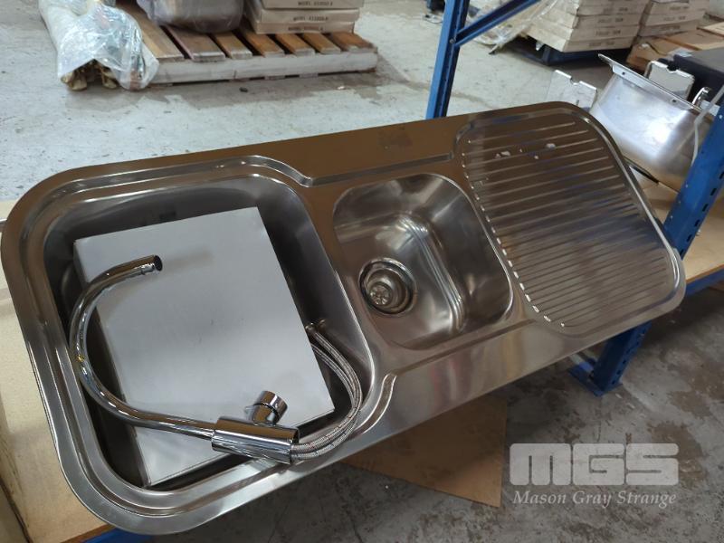 SINK & MIXER COMBO. DOUBLE BASIN STAINLESS STEEL SINK AND CHROME SINGLE LEVER SINK MIXER TAP, CURVED SPOUT. ALL NEW.