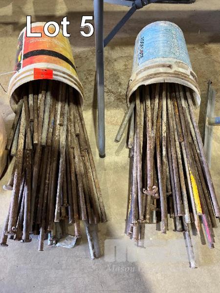 2 x BUCKETS, ASSORTED SIZE STEEL PINS, APPROX 60, WITH BAG OF SAFETY CAPS