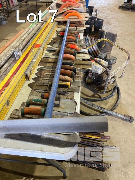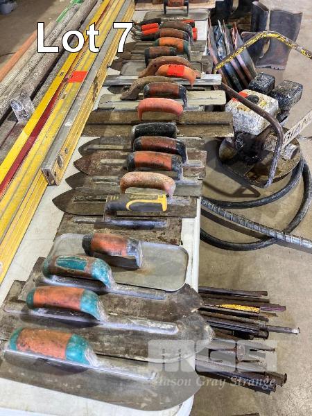 CONCRETING TOOLS INCLUDING TROWELS, FLOATS, TWITCHERS, CONCRETING SCREED, ETC