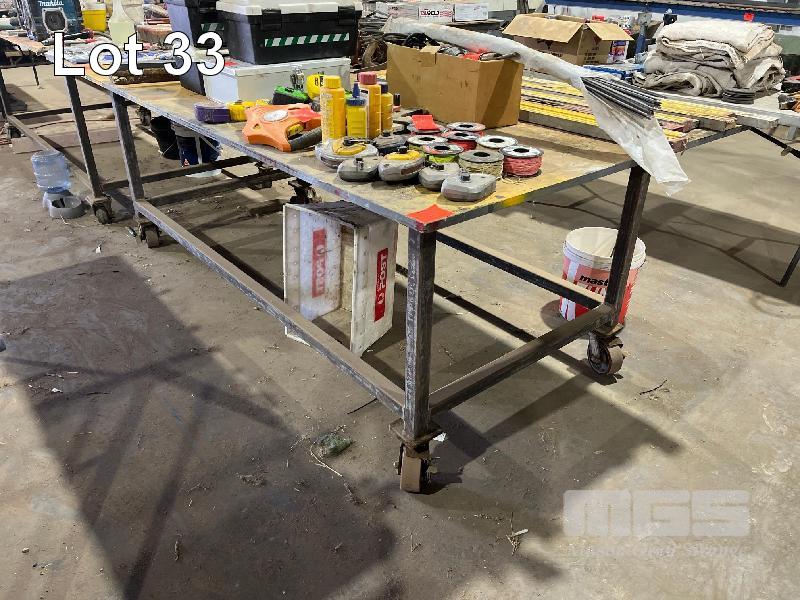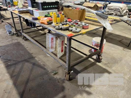 WORK BENCH, STEEL FRAME, TIMBER TOP, MOBILE, 2400 x 1200mm (TOP)