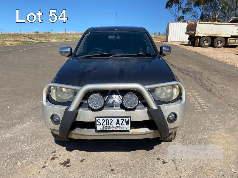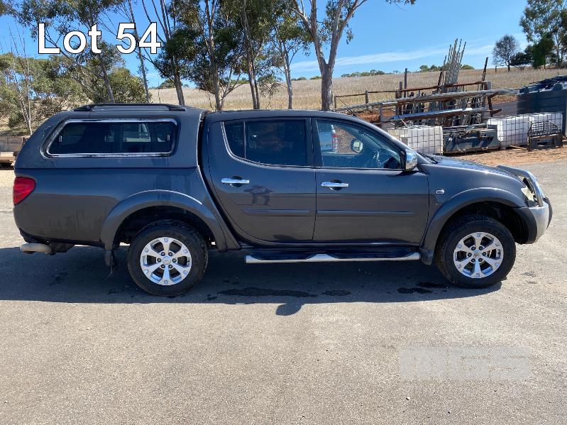 2014 MITSUBISHI TRITON GLX-R DUAL CAB UTE 4X4 REG: S202 AZW (SA) VIN: MMAJNKB40FD001141 ODO: 293,043kms SHOWING MANUAL, TURBO DIESEL, GUNMETAL GREY DUCO, 4 DOORS, 5 SEAT, 4X4 ABS, AIR BAG, AIR CON, ALLOY WHEELS, BULL BAR, CANOPY, CENTRAL LOCKING, POWER WINDOWS, SIDE STEP, SPOT LIGHTS, TOW BAR, TITAN 2 DRAWER TOOL BOX NOTE: FADED PAINT, CRACKED TAIL LIGHT, GENERAL WEAR & TEAR (WITH PAPERS)