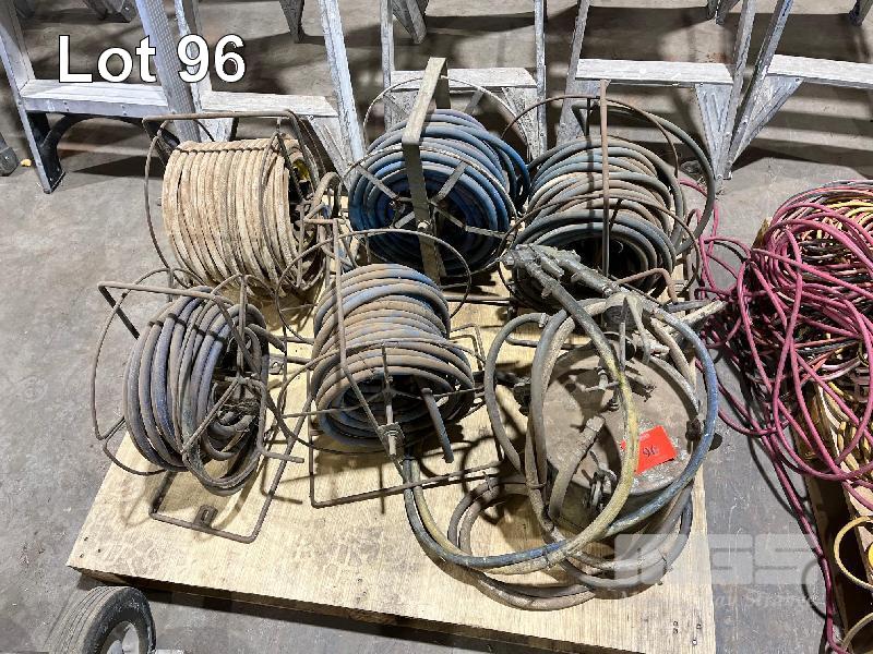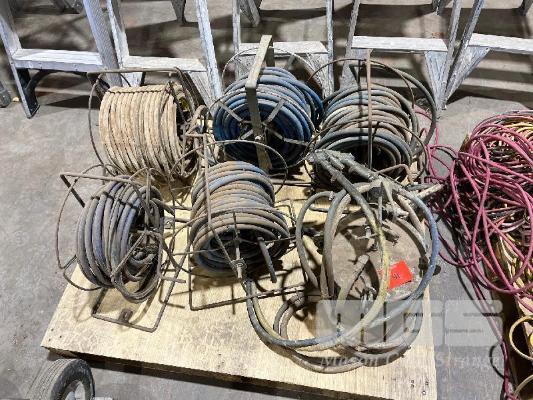 PRESSURE SPRAY POT & 5 x AIR HOSE REELS