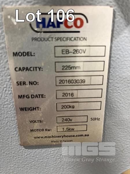 BAND SAW, HAFCO METALMASTER MOD: EB260V DOM: 2015 240V, 15AMP