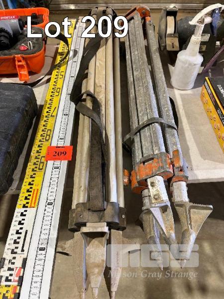 2 x LASER LEVEL TRIPODS & 2 x STAFFS
