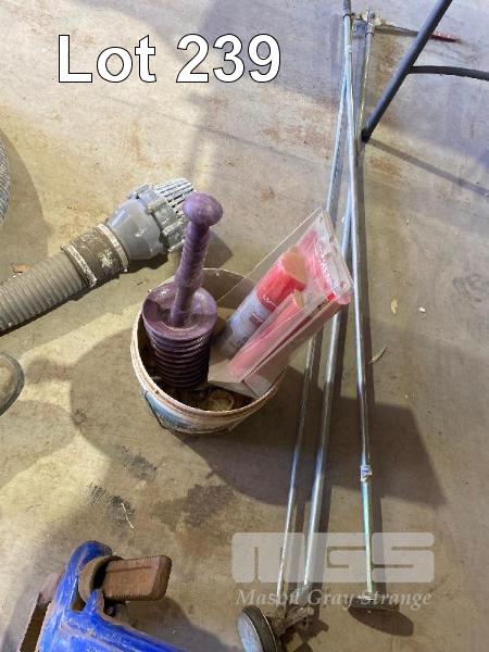 TEST BUNG & PLUNGER WITH BUCKET OF ASSORTED FITTINGS