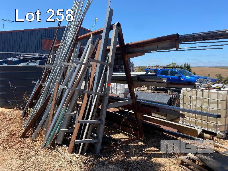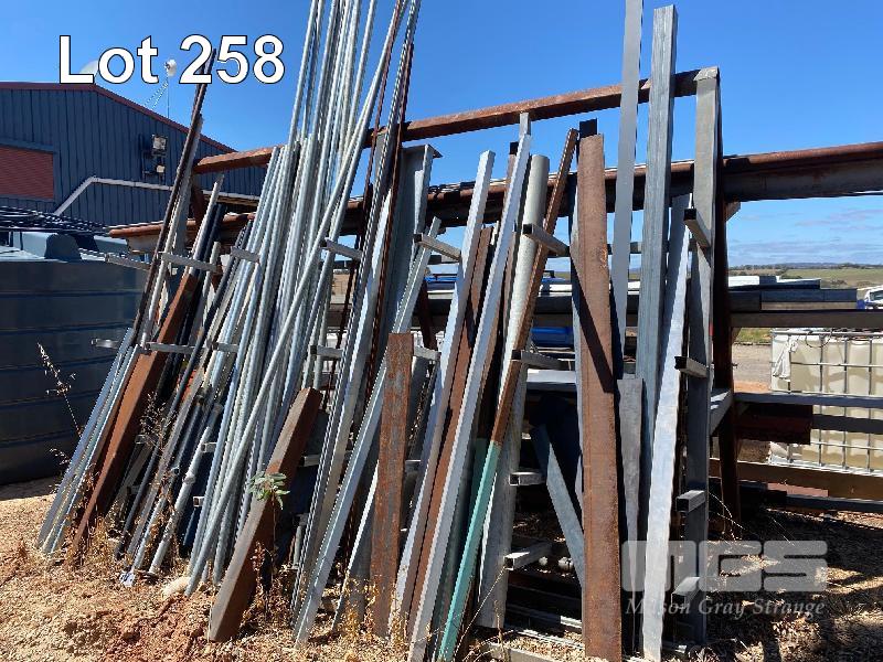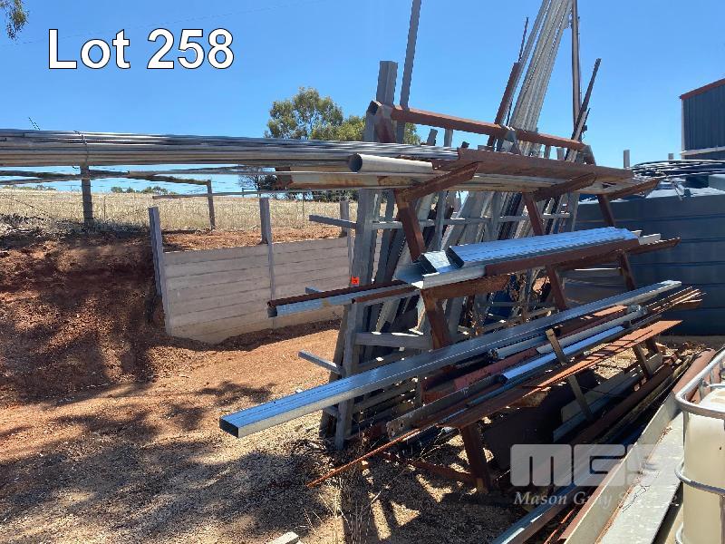 A-FRAME STEEL STOCK RACK & CONTENTS, 4000 x 2600mm (H) STEEL & GALV ASSORTED LENGTHS, TUBE RHS, PURLINS, PLATE, UB, ETC
