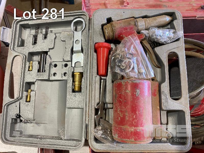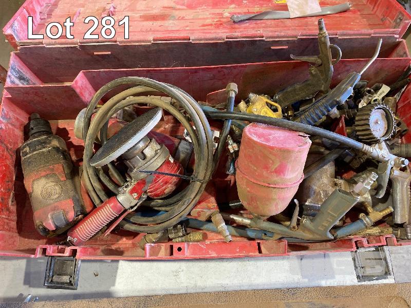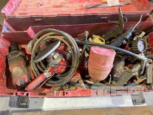 ASSORTED PNEUMATIC TOOLS & FITTINGS, 2 x IMPACT DRIVERS, ORBITAL SANDER, SILICONE GUN, AIR GUNS, ETC