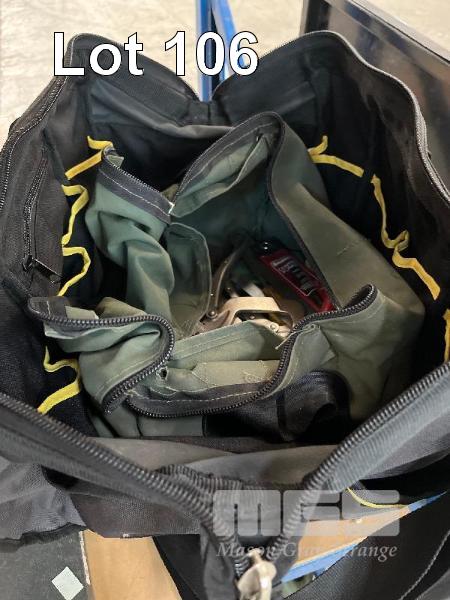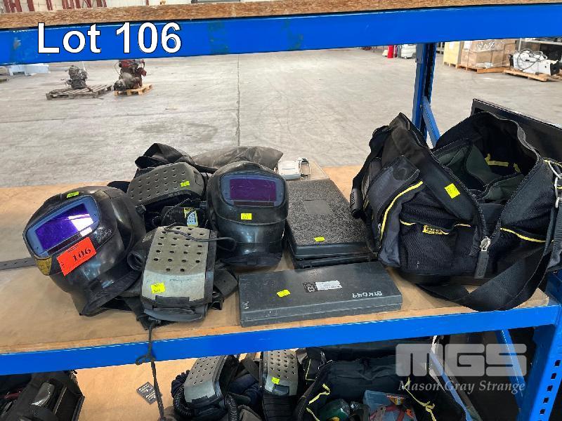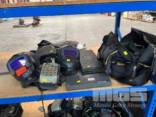 2 x POSITIVE AIR FEED WELDING HELMETS, 3M ADFLO AUTO TINT, SPEED GLASS WITH FAN PACKS, (NO BATTERIES OR CHARGERS) 1 x FAT MAX TOOL BAG WITH ASSORTED HAND TOOLS, INC VICE GRIPS, M&W COMBINATION SETS, HAMMERS, ETC