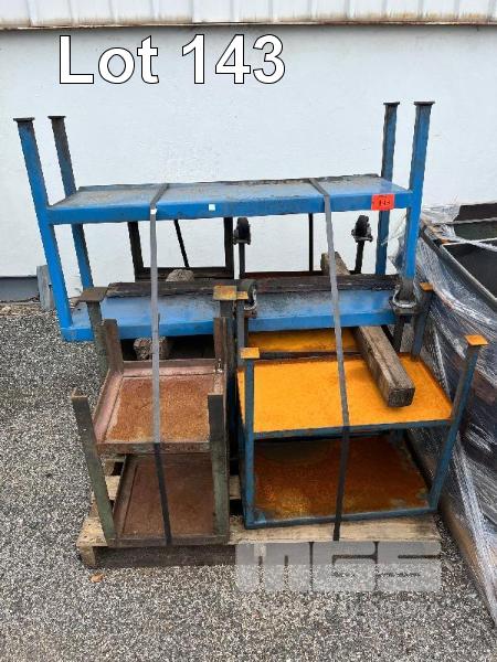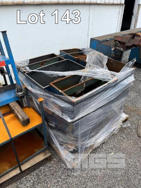 5 x ASSORTED WORK STANDS & 5 x HEAVY DUTY STEEL HOPPERS, 600 x 350 x 800mm (H),
