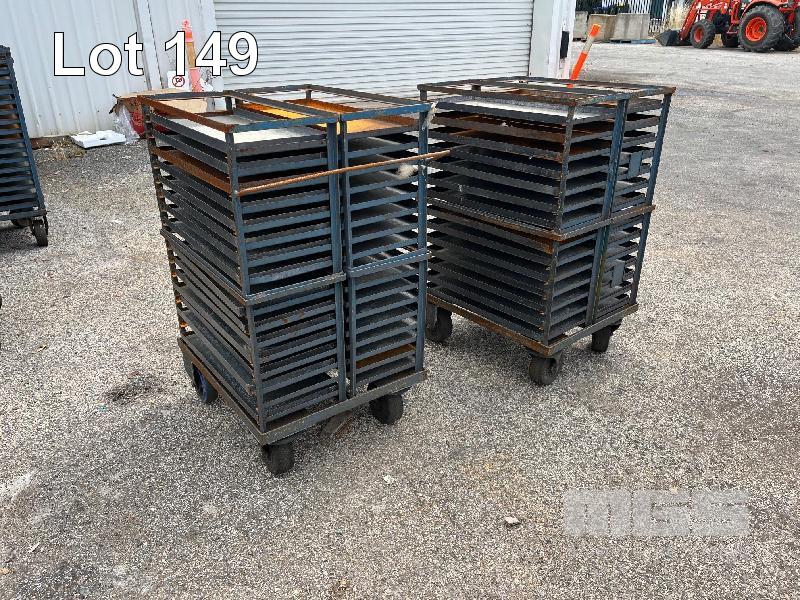 4 x STEEL TRAY RACK TROLLIES, 660 x 570 x 1100mm (H), 32 TRAYS EACH