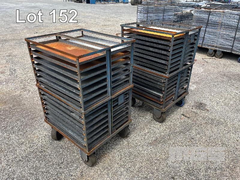 4 x STEEL TRAY RACK TROLLIES, 660 x 570 x 1100mm (H), 32 TRAYS EACH