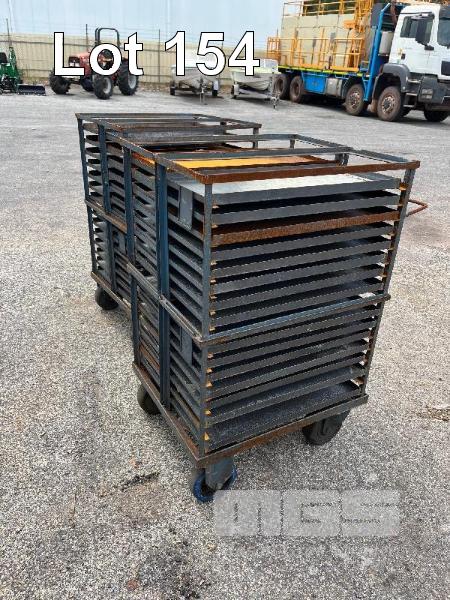 4 x STEEL TRAY RACK TROLLIES, 660 x 570 x 1100mm (H), 32 TRAYS EACH