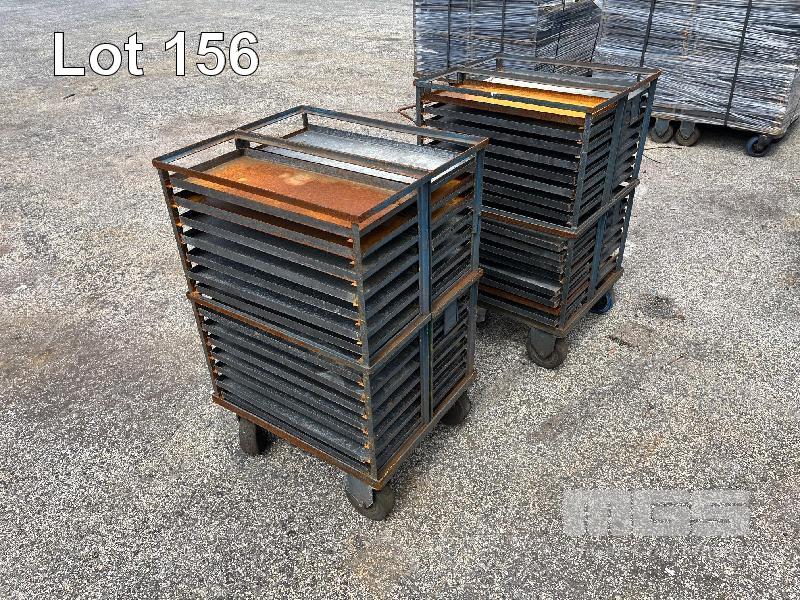 4 x STEEL TRAY RACK TROLLIES, 660 x 570 x 1100mm (H), 32 TRAYS EACH