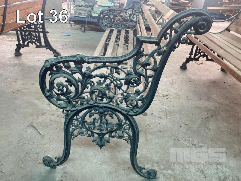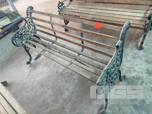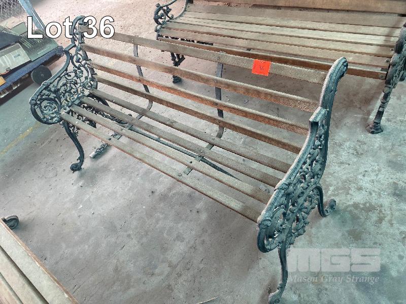 VINTAGE TIMBER BENCH, CAST IRON ENDS