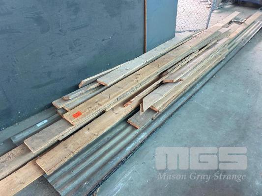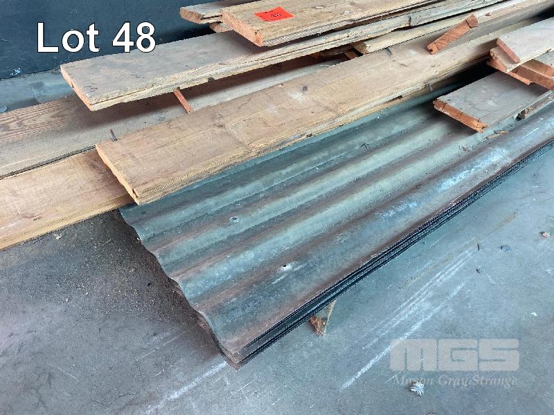 QUANTITY SALVAGE PINE & 11 x CORRUGATED IRON SHEETS, 5570 x 900mm