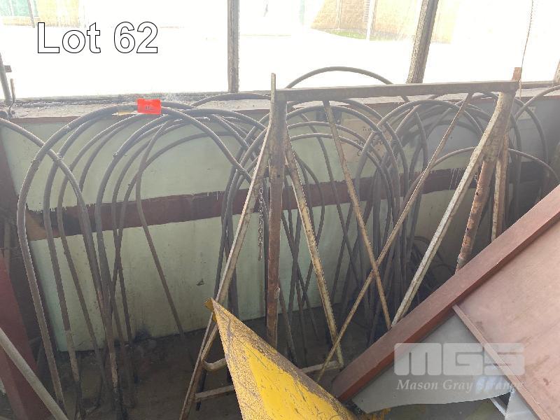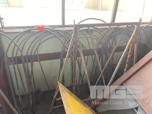 IRON FENCING, TIMBER BOOK HOLDERS, 7 x TIMBER DOORS, OFFICE CHAIR, DESK, 5 x STAGE BLOCKS