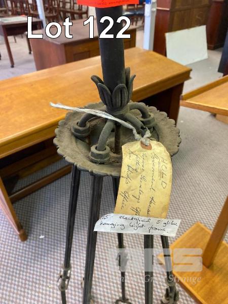 VINTAGE 5 GLOBE CHANDELIER, GOVERNMENT HOUSE, FORMER SECRETARY OFFICE 2000mm (H)