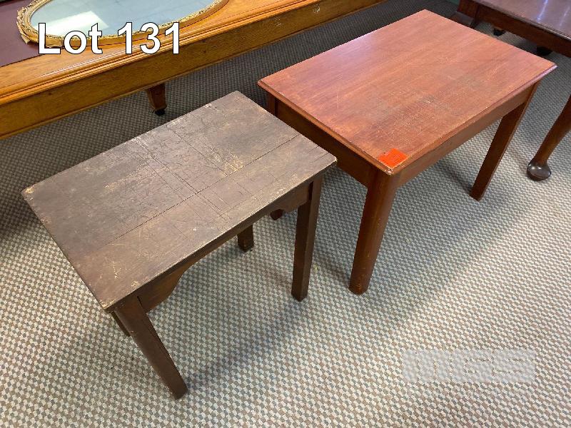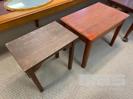 PAIR SMALL TIMBER TABLES, 900 x 600mm & 670 x 440mm
