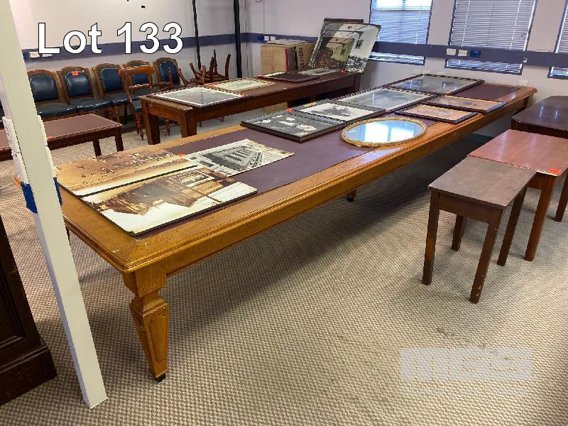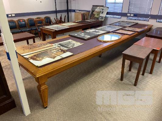 LARGE TIMBER BOARDROOM TABLE, WITH VINYL INLAY & CENTRE SUPPORT LEG 5000 x 1370mm
