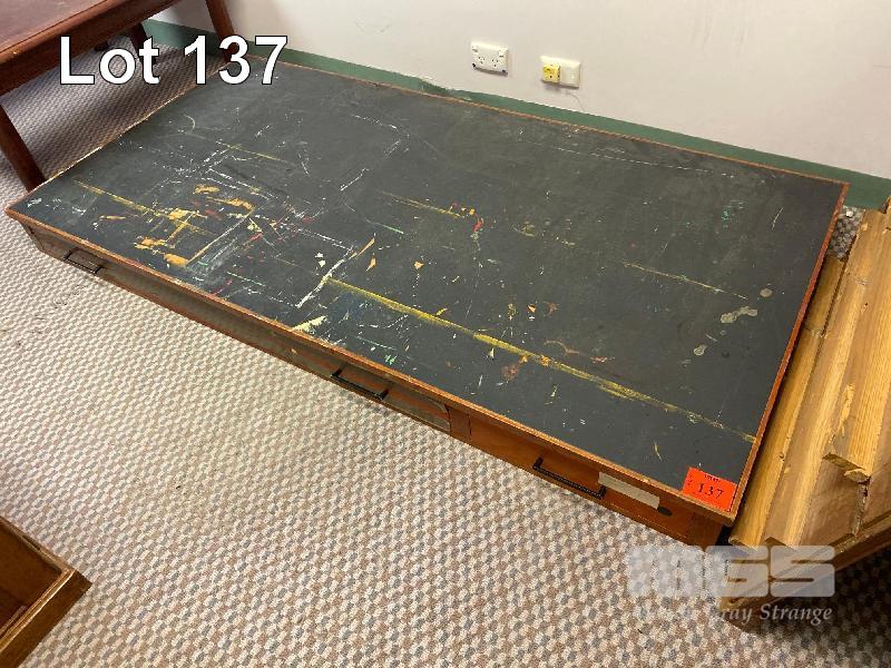 DESK TOP ONLY, 3 DRAWER, VINYL INLAY 1830 x 920mm & 5 x PLAN DRAWERS & RUNNERS, 1350 x 880mm