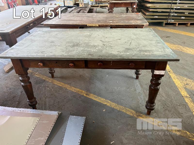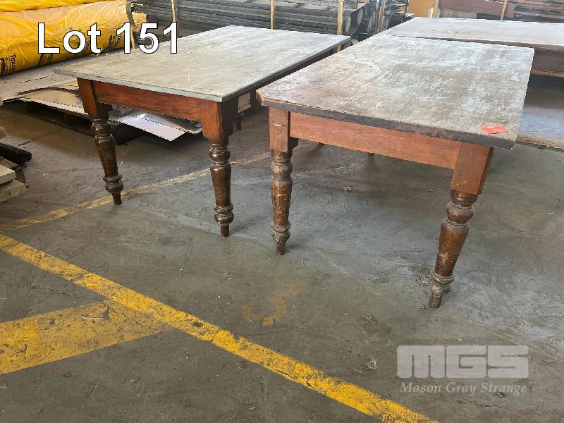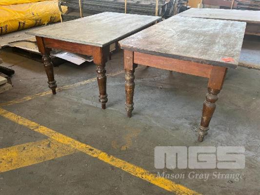 PAIR TIMBER TABLES , 1 WITH LEAD COVER 1520 x 910mm