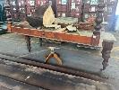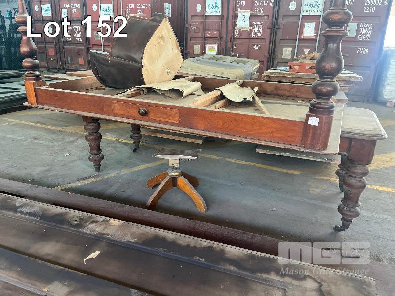 2 x TIMBER TABLES, 2500 x 900mm & 2200 x 1310mm (ONE NEEDS LEG REATTACHED) & EARLY SWIVEL OFFICE CHAIR,