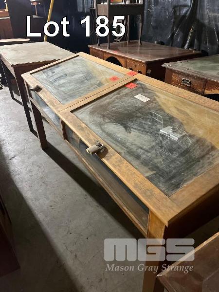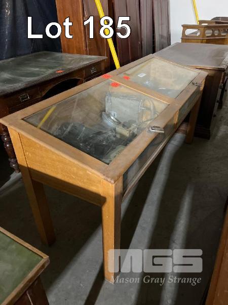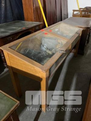GLASS DISPLAY CABINET, 2 x LIFT UP LIDS, GLASS TOP 1800 x 600mm