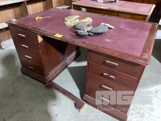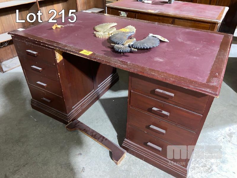 TIMBER DESK, VINYL INLAY, 8 DRAWER 1500 x 900mm IN 3 SECTIONS