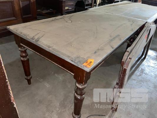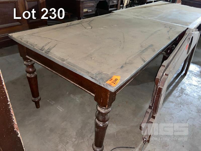 TIMBER TABLE, LEAD TOP, 1530 x 930mm