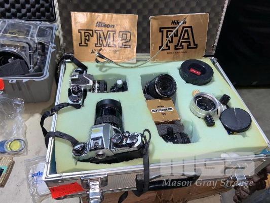 2 x NIKON CAMERAS, FM2 & FA WITH VARIOUS TELEPHOTO LENSES IN CARRY CASE, PADDED & BOOKS